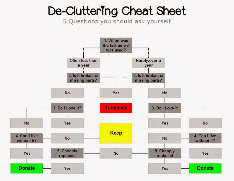This is a great tool to keep you focused on the job at hand, and it helps you to breakdown the emotional side of wanting to keep an item and gets you to think practically, going to give it a try!