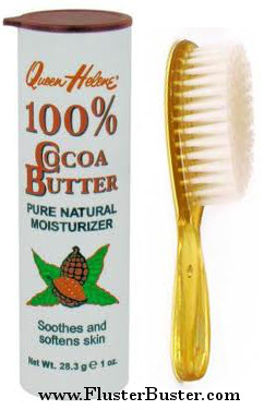 Also once or twice a week, after applying cocoa butter, exfoliate with a baby brush, then rinse. After that apply cocoa butter and wipe away.