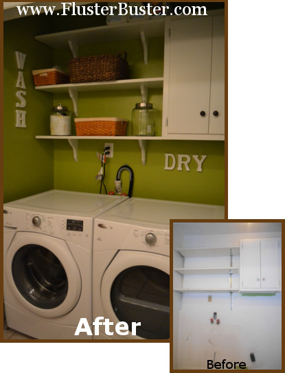 It’s done, it’s really done! I can’t believe it, it turned out so much better then I imagined. The hubby got everything on the Day 2 list done last night and today he installed the washer and dryer. Installing them was a bigger task then what we thought it would be. Front load washers are heavvvvvvvy and since our laundry room is upstairs this was quite a workout, but my good looking, strong man did it, with a little help from little ole’ me. Now my washer and dryer are comfortably nestled in a pretty room made just for them.